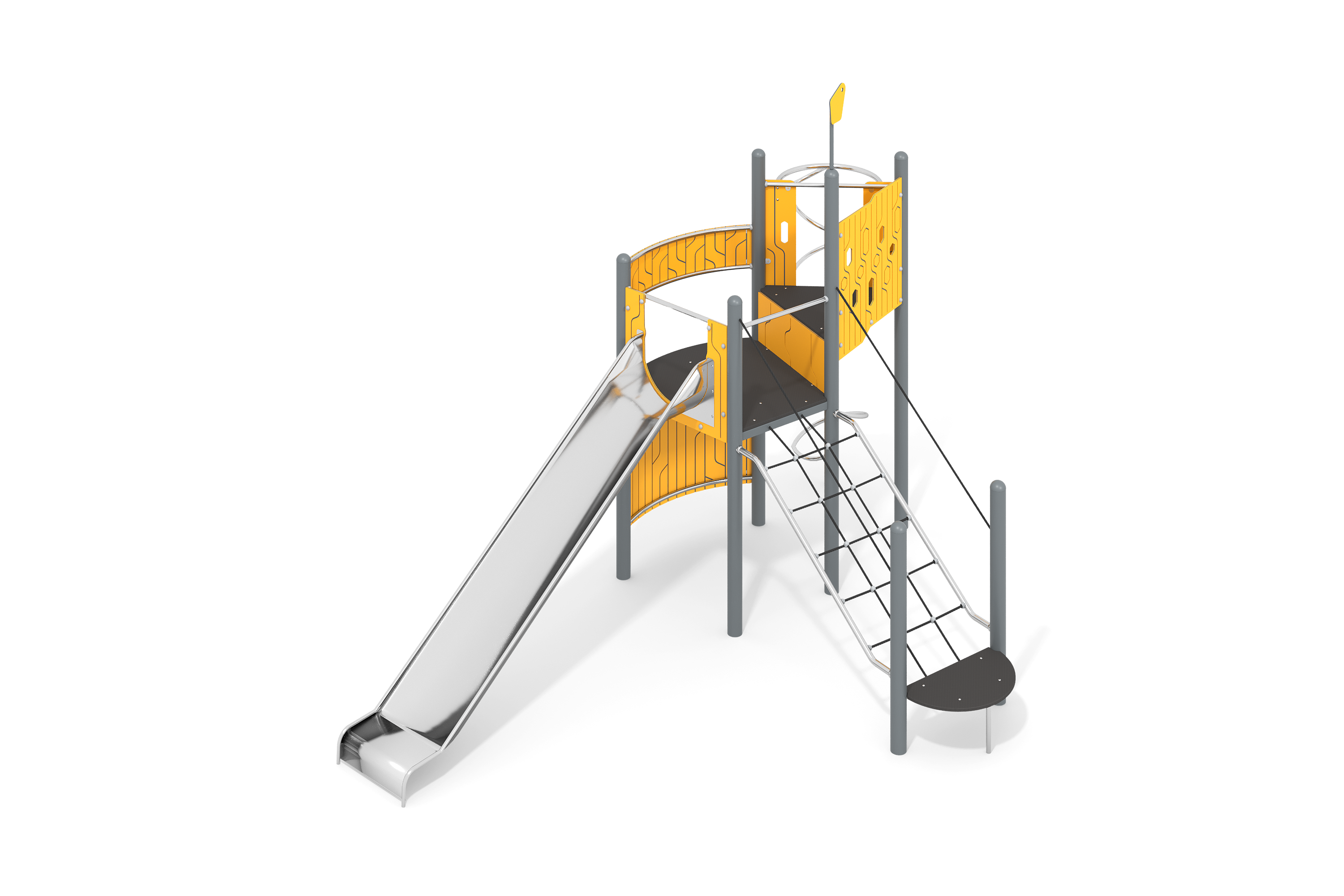 Комплекс включает в себя встраиваемые развивающие элементы, такие как «Счеты», «Вращающийся лабиринт» и переговорные устройства, что делает его интересным и многогранным для детей. Высокая устойчивость и надежность конструкции позволяют использовать комплекс на открытых площадках и в любых условиях.