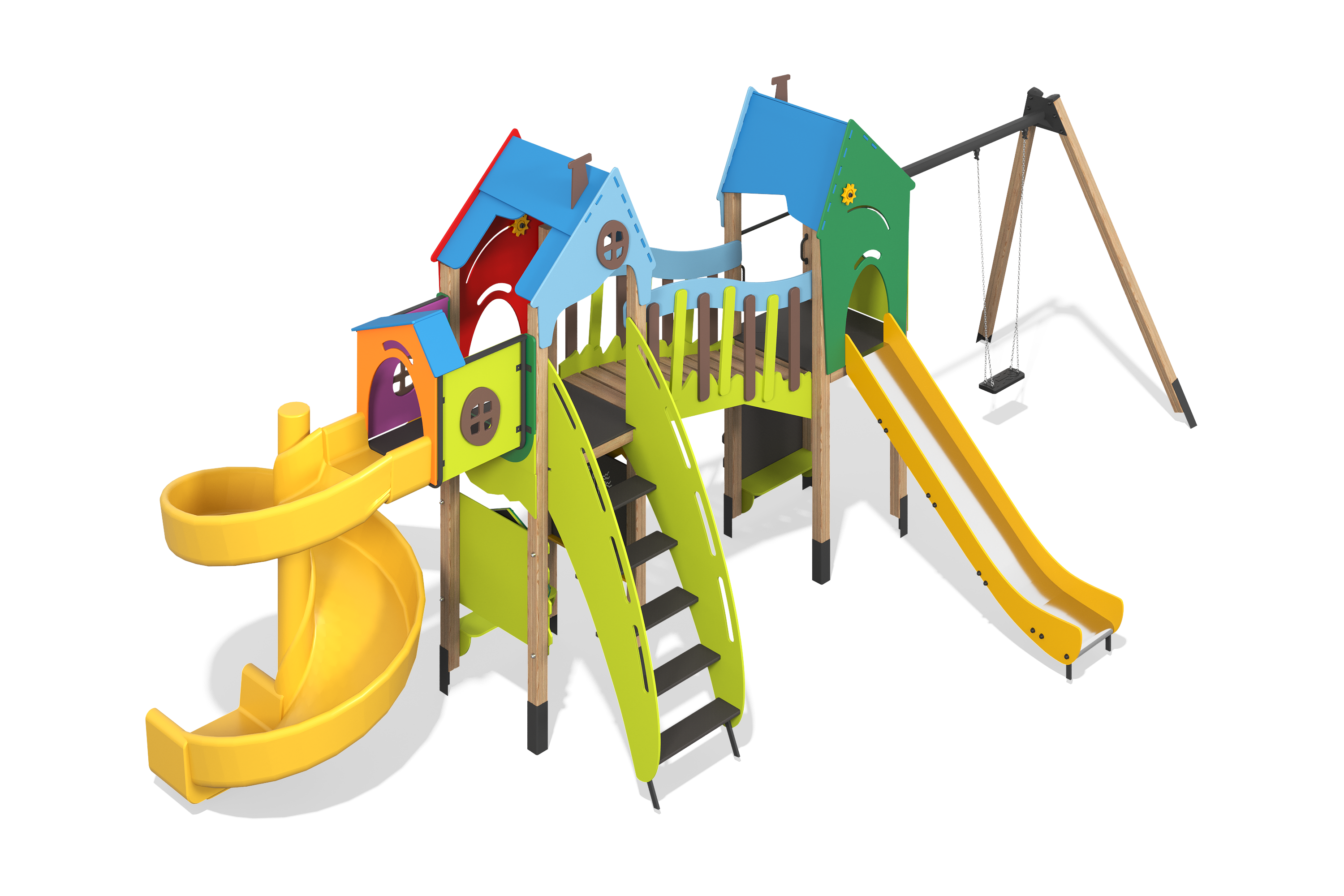 Игровое оборудование компании «Лебер» создано для всестороннего детского развития. С помощью наших элементов дети учатся взаимодействовать, стимулируют когнитивные способности и улучшаю физическую форму через активные игры.