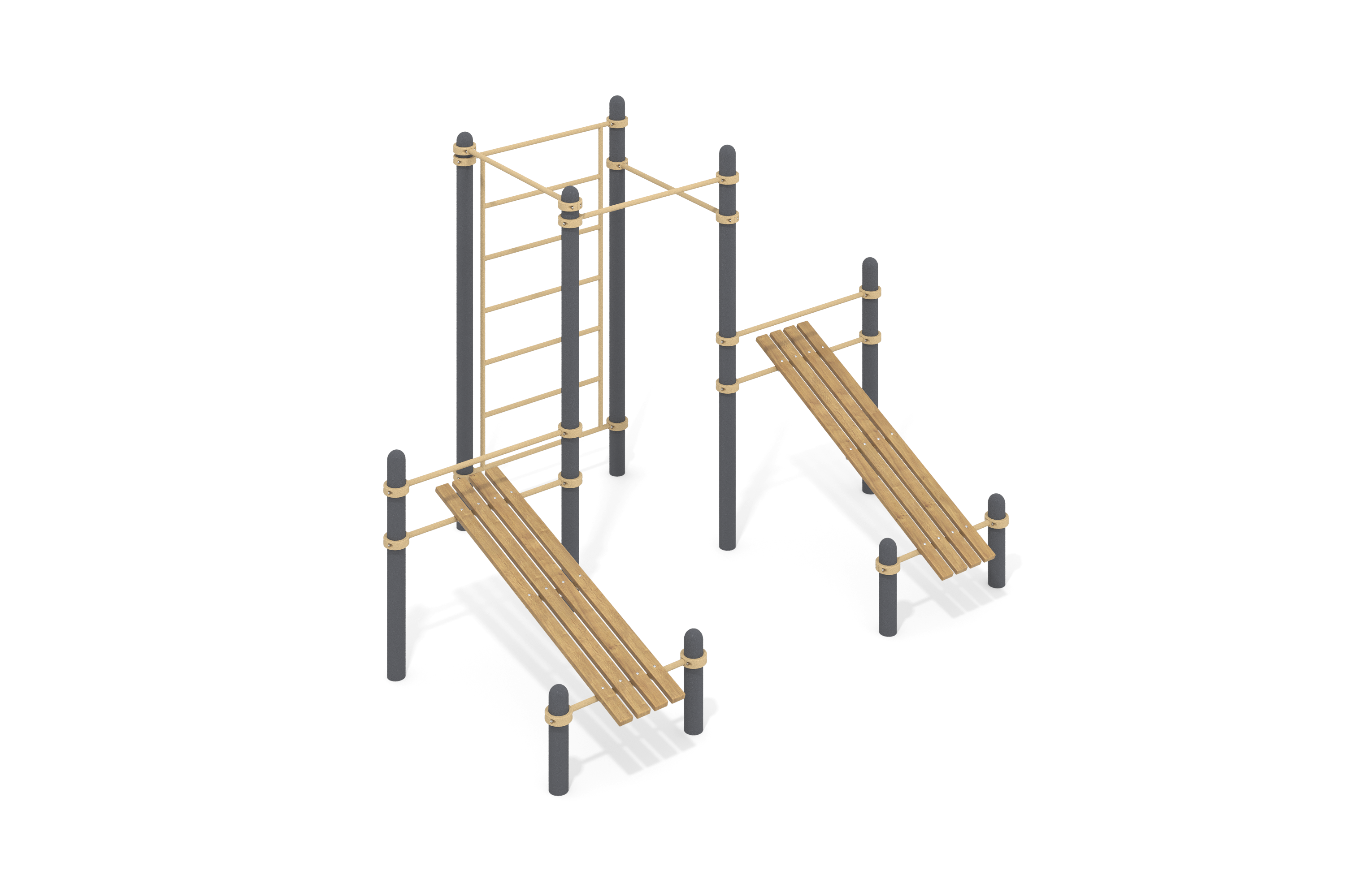 Конструкция сопровождается надежным крепежом, который обеспечивает стабильность и безопасность. Все соединения аккуратно оформлены пластиковыми заглушками, придающими изделию завершенный вид.