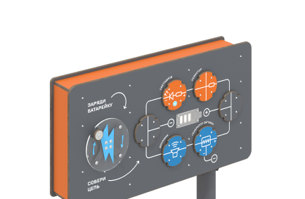 Знаком «плюс» отмечают место, где больше протонов, а знаком «минус» — место, где больше электронов. Если между минусом и плюсом проложена подходящая для тока дорога, возникает электрическая цепь, по которой течёт электрический ток. Поворачивая фишки с проводами, вы меняете направление дороги, по которой может бежать электрический ток. Проводам все равно, в какую сторону побегут электроны. Поворачивайте провода, как вам хочется, чтобы собрать электрическую цепь.
