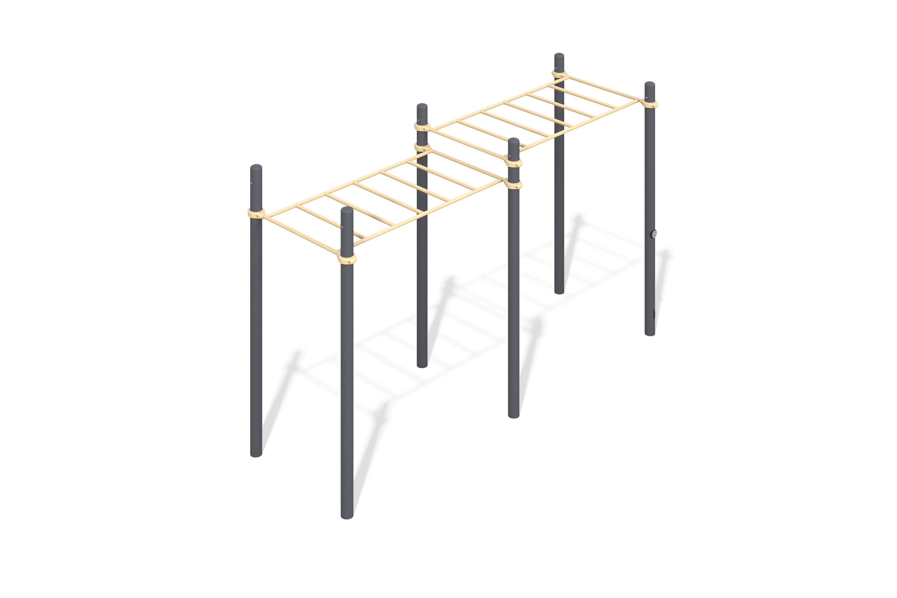 Металлические элементы конструкции имеют защитное покрытие, что гарантирует надежность и долговечность. Опорные стойки и крепежные элементы тщательно обработаны для безопасности пользователей.