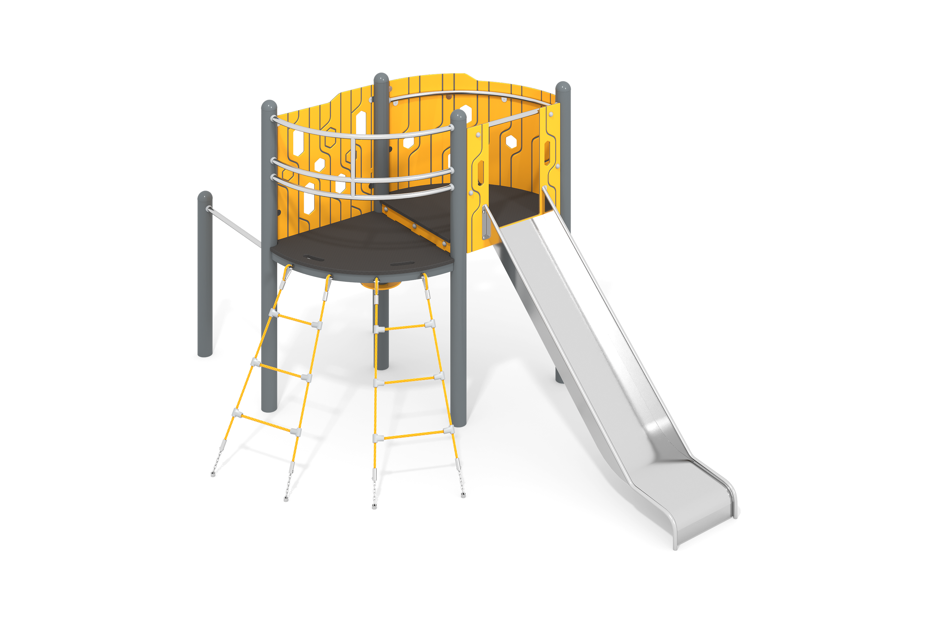 Этот комплекс отлично подходит для детских игровых площадок, включая образовательные учреждения и спортивные клубы, предоставляя детям возможность активно развлекаться и заниматься физической активностью.