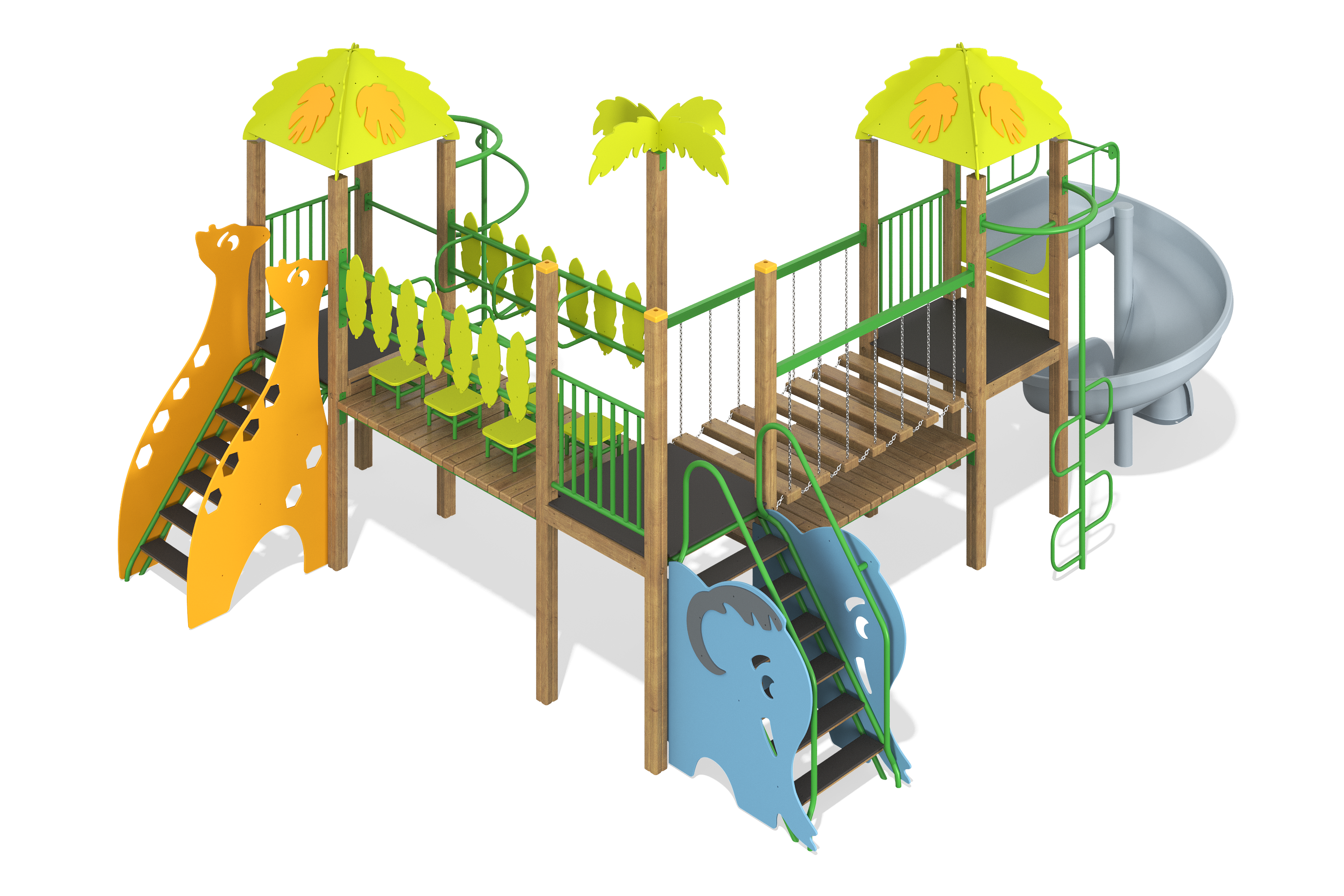 Игровое оборудование компании «Лебер» создано для всестороннего детского развития. С помощью наших элементов дети учатся взаимодействовать, стимулируют когнитивные способности и улучшаю физическую форму через активные игры.