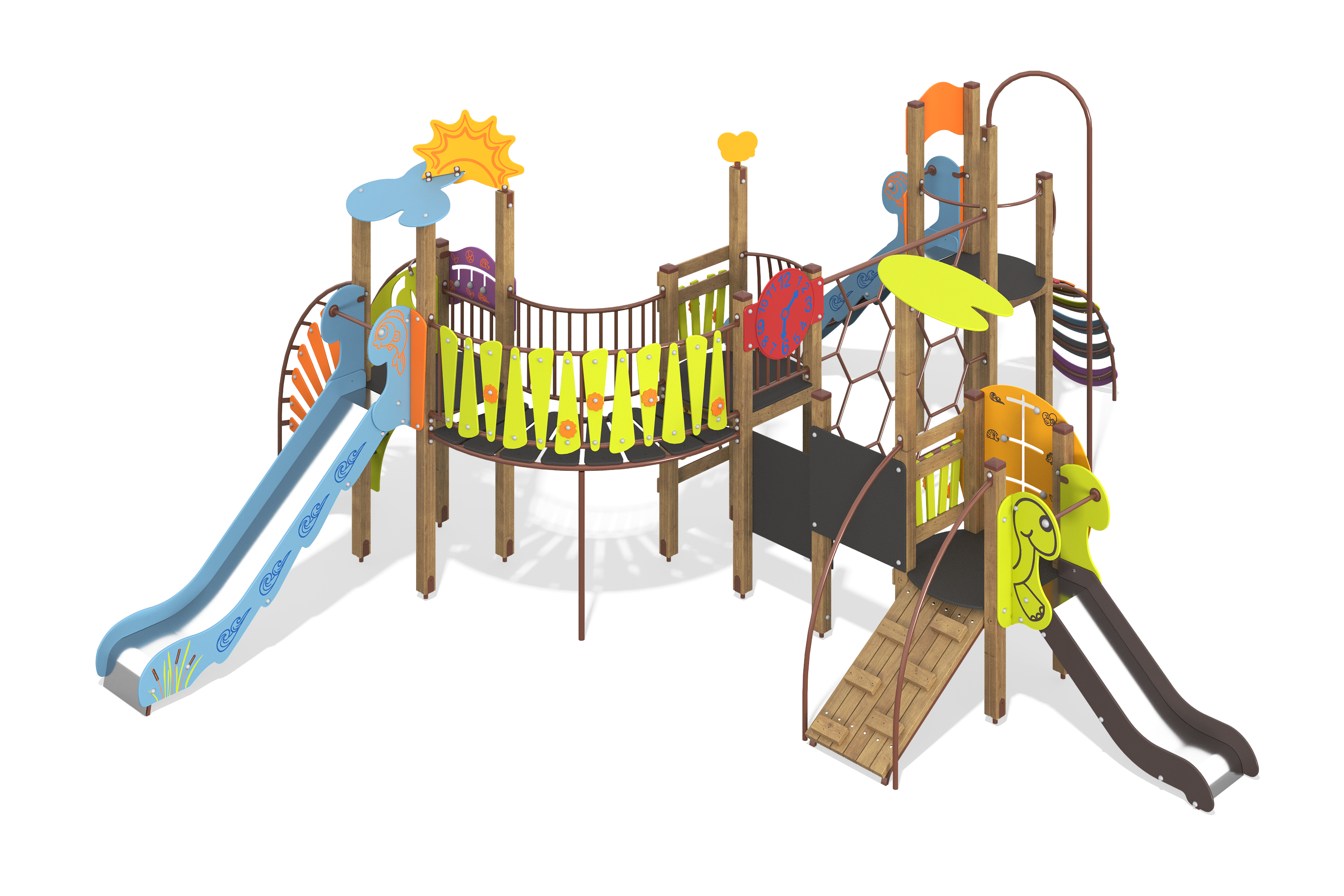 Разнообразие игровых элементов делает занятия увлекательными и интересными. Комплекс подходит как для детей, так и для взрослых, создавая возможность для активного времяпрепровождения.