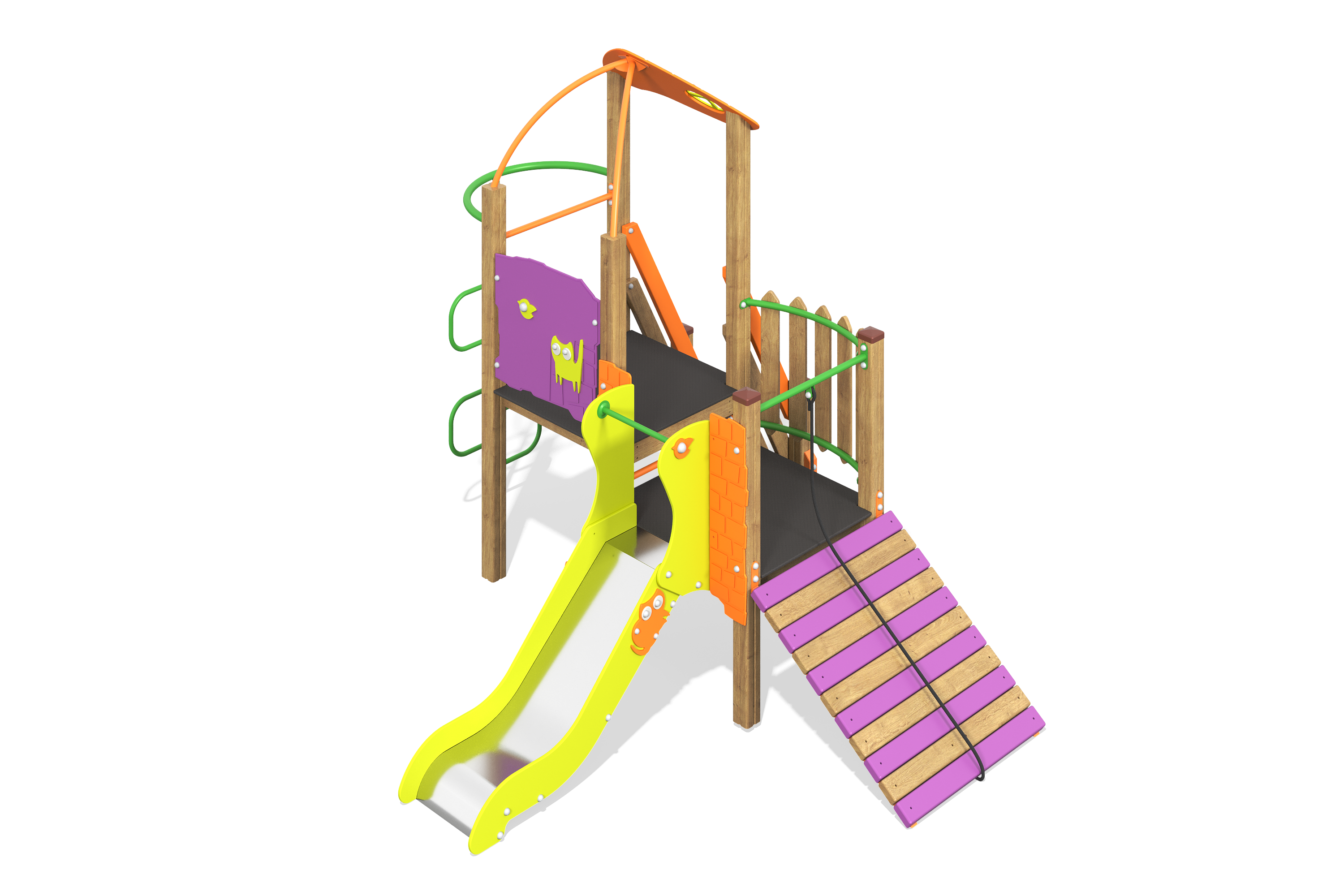 Игровое оборудование компании «Лебер» создано для всестороннего детского развития. С помощью наших элементов дети учатся взаимодействовать, стимулируют когнитивные способности и улучшаю физическую форму через активные игры.