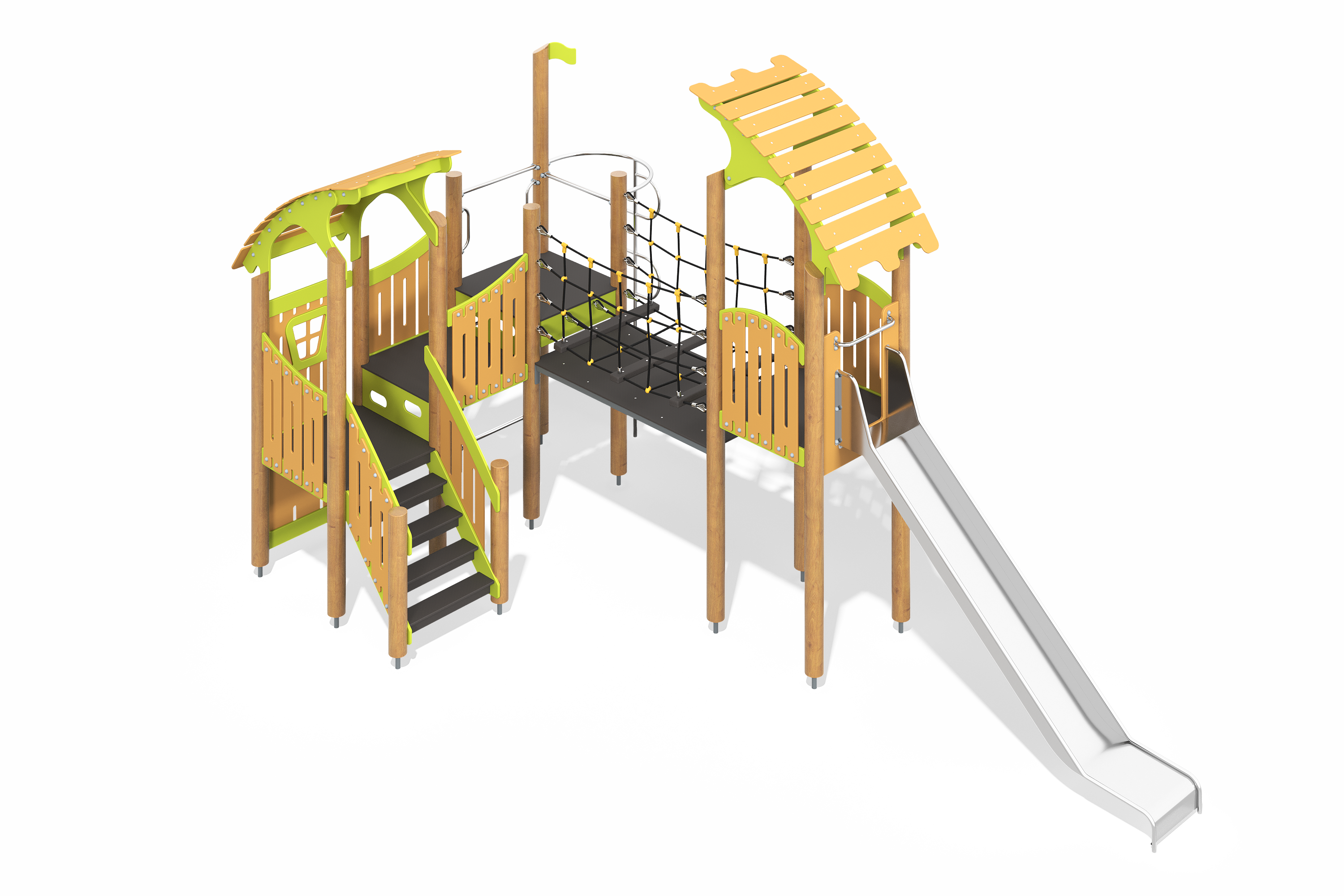 Игровое оборудование компании «Лебер» создано для всестороннего детского развития. С помощью наших элементов дети учатся взаимодействовать, стимулируют когнитивные способности и улучшаю физическую форму через активные игры.