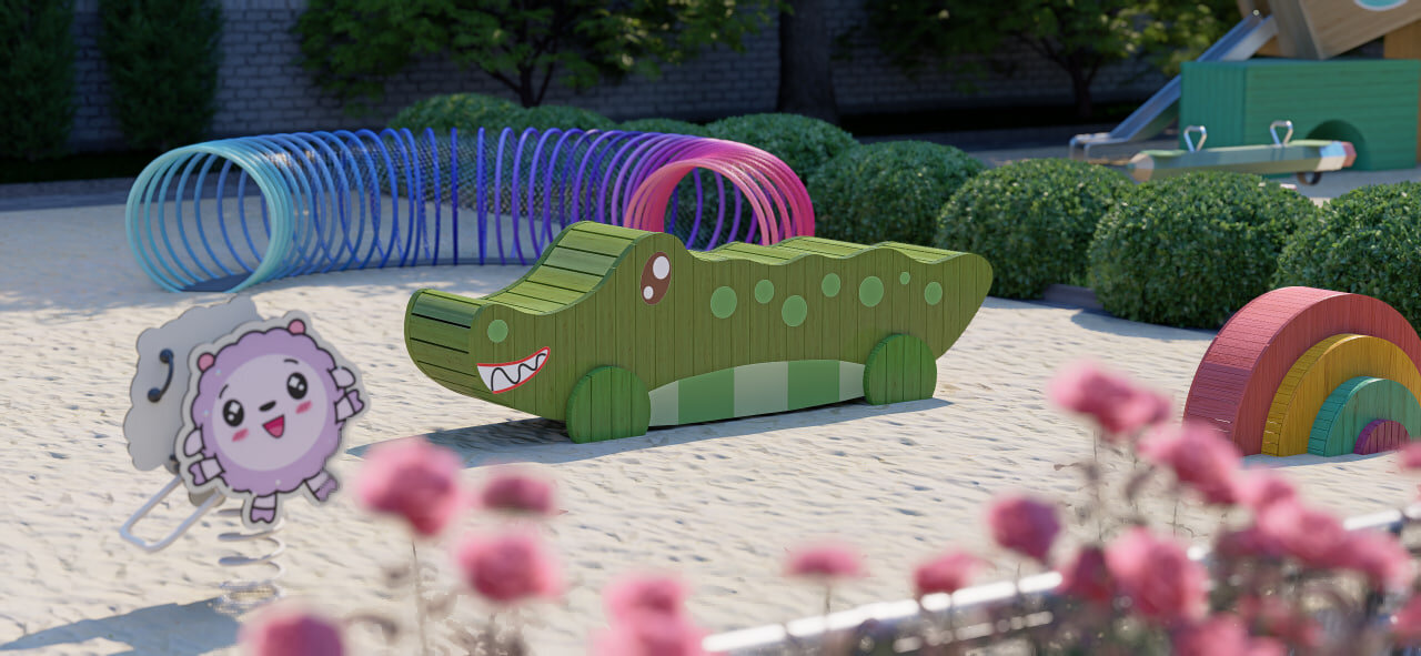 Тематическая площадка не просто привлекает внимание к двору, она усиливает мотивацию ребёнка и помогает дольше удерживать внимание, потому что игра начинается ещё до взаимодействия с оборудованием. Именно на этом эффекте построены линейки игрового оборудования Лебера по мультфильмам «Малышарики» и «Фиксики», созданные в коллаборации с ГК «Рики»: знакомые образы становятся функциональным инструментом, который помогает ребёнку быстрее включиться в игру и легче освоить пространство.