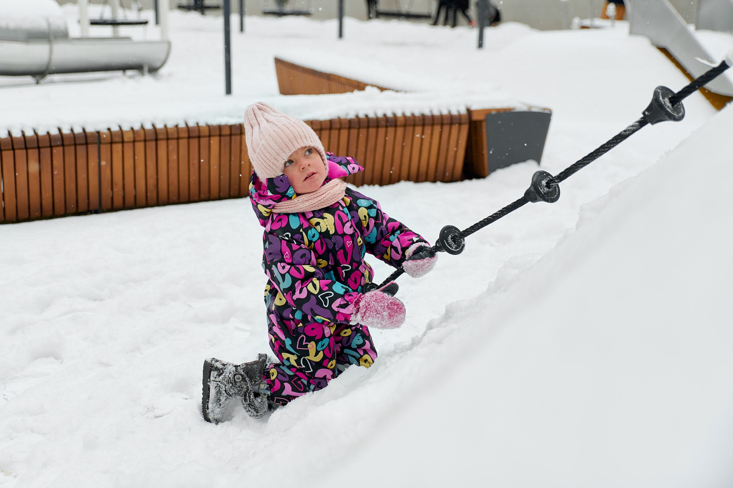 Когда базовый интерес включён, ребёнку нужен вызов. Лазалки, перепады высот, наклонные поверхности и элементы с контролируемым риском дают ту самую «нагрузку», которой так не хватает городским детям. Здесь развивается сила хвата, баланс, координация, работа вестибулярной системы.