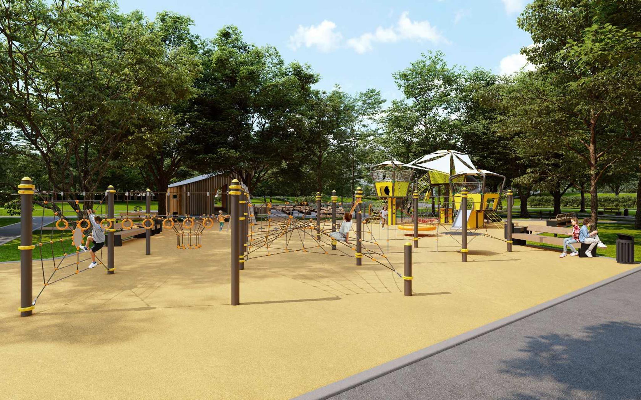 Сергей Собянин отметил, что многие комплексы сегодня — это не просто детские городки, а настоящие арт-объекты, связанные с историей района или научной темой. Так, у Беловежского пруда в Можайском районе появится спортивно-игровая зона Лебера с мини-скалодромом, горками, лазалками и сетками для детей разного возраста.